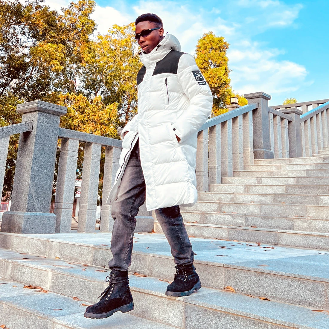 • Doudoune longue à capuche tendance