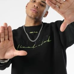 Meilleure affaire 😀 Sweat Crewneck Nasa Final Edition 844 Noir Blanc Détails Or de Final Club 👍