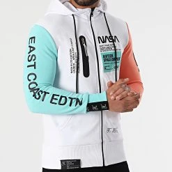 Vente flash 😍 Sweat Capuche Tricolore Avec Broderie 1027 Blanc Orange Fluo de Final Club 🔥